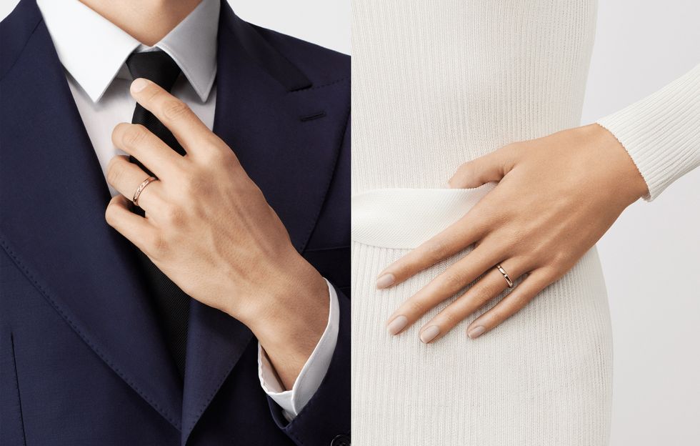 Wearing a wedding ring can be playful and fun! Piaget, the top Swiss watch and jewelry brand, has its most iconic Possession wedding ring. The special thing is that the ring can be rotated. When you put it on, the light rotation of the ring between your fingers is like a ritual. The moment also initiated an eternity of intimate and spiritual interaction.