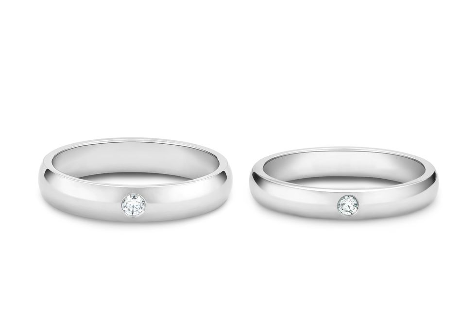 (Left) DB Classic platinum solitaire wedding ring, 4mm style, about NT57,000, De Beers.