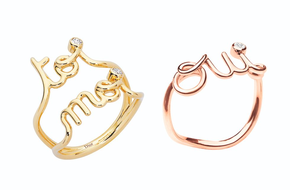 Craving another way to say I love you? Dior's Oui series of jewelry, full of bold creativity, uses three gold cursive letters o, u, and i to symbolize "I do" in French, and ends with a single diamond embellishment. This series also has French words "Je t'aime" which means "I love you" and "Toi Moi" which means "you and me", full of playful and romantic sweet feelings!