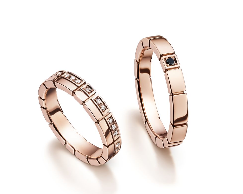 (Right) Liens Évidence 18K rose gold wedding ring set with brilliant-cut diamonds, approximately NT59,900, Chaumet.