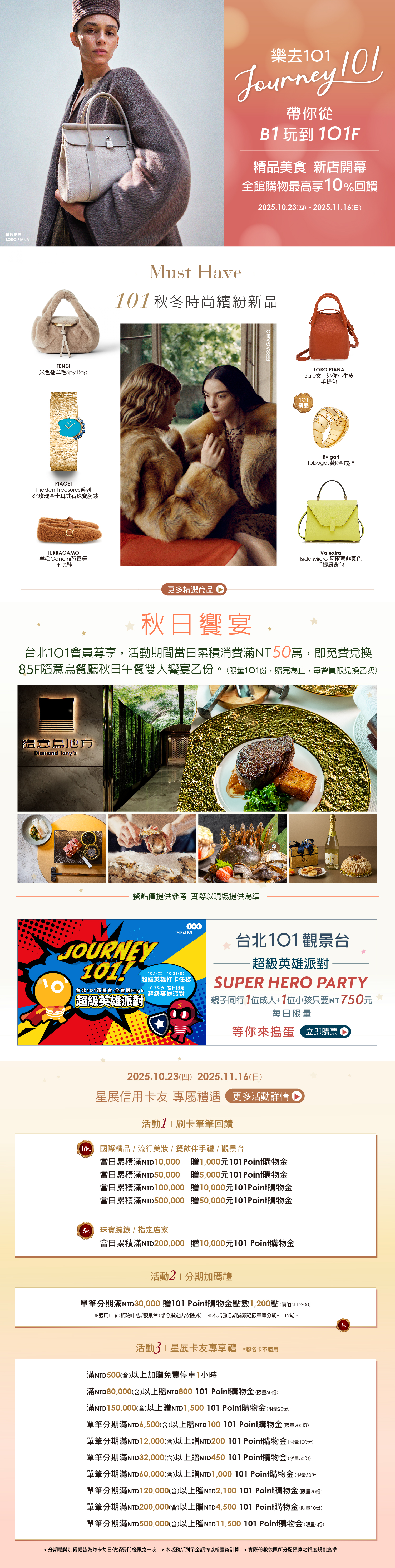 【星展卡友專屬】樂去101 秋日繽紛派對 帶你從B1玩到101F,刷星展卡當日累積消費1萬元送1,000元購物金