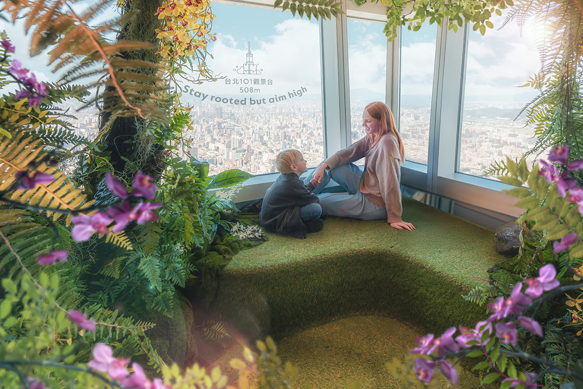 本次場域改裝由「台灣花藝之光」凌宗湧大師擔任策展人,將101F劃分為多個視覺亮點: