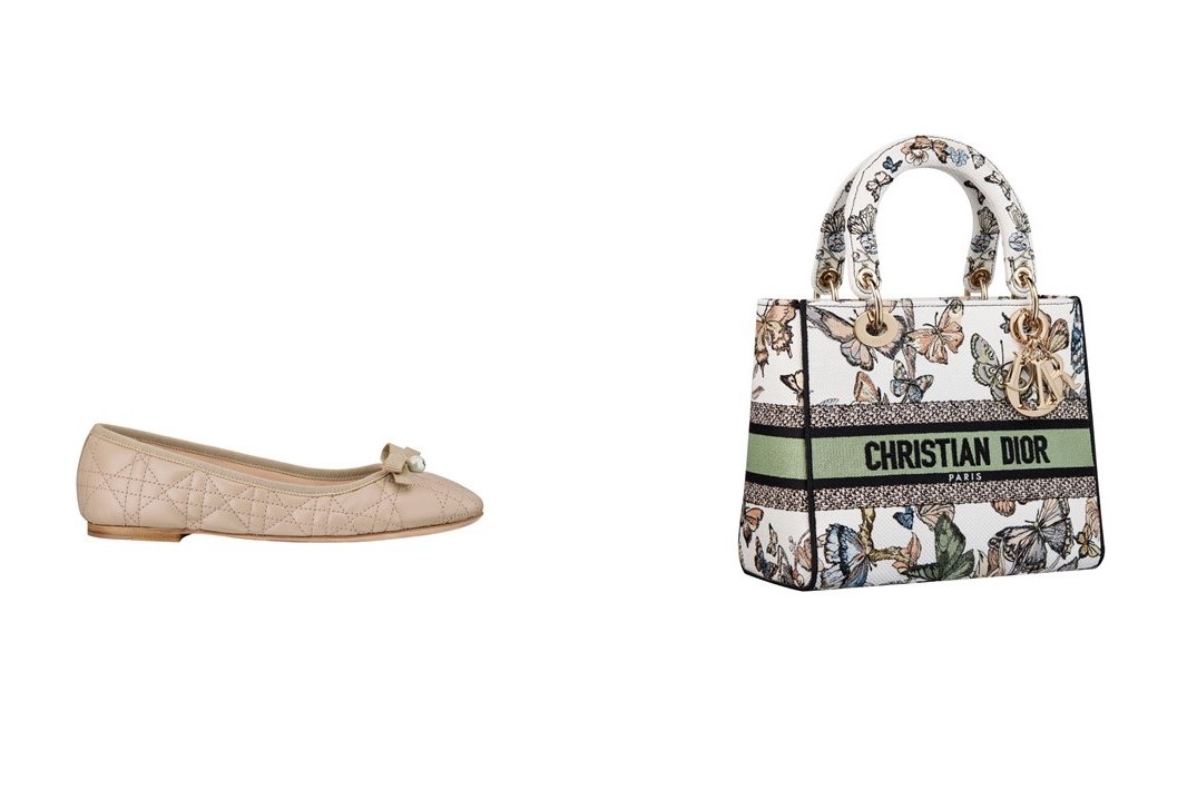 DIOR BALLET nude cannage quilted calfskin ballet shoes with pearl bow/LADY DIOR Mexican colorful TOILE DE JOUY embroidered medium handbag