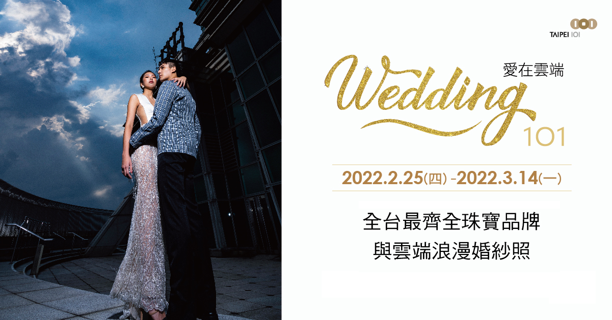 從2/25(五)至3/14(一)白色情人節為止,台北101舉行《愛在雲端 Wedding 101》系列活動,從婚戒試戴、男士正裝搭配、新娘美妝護膚、六禮喜餅的挑選等,台北101提供專人迎賓服務,邀請您訂製自己的專屬結婚人生體驗,一站式輕鬆完成結婚採購。