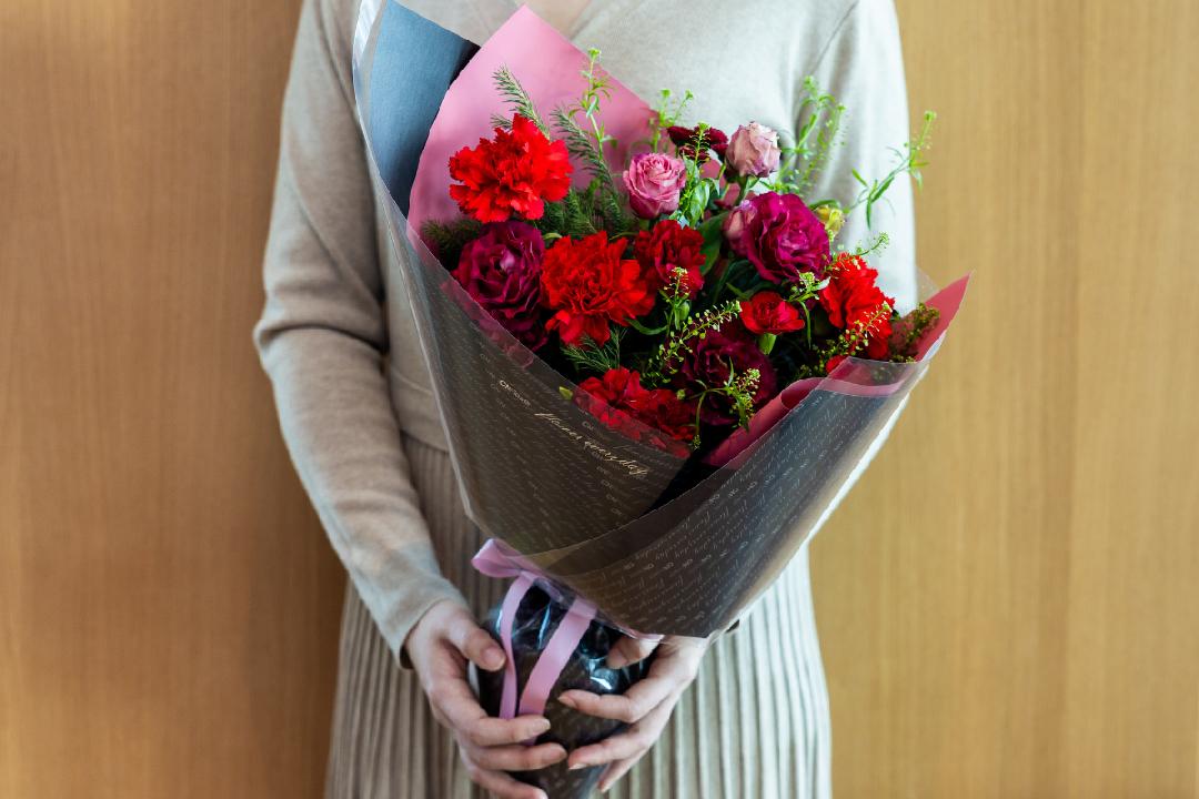 【馨愛的你 - 盛放紅精心選用繁盛的中康及大康乃馨,象徵母親暖心的守護。在桔梗與法小菊的簇擁下,揉合了澳洲茶樹與尤加利的清新草木香。讓這一抹綻放的紅,傳遞最誠摯的擁抱與愛意。