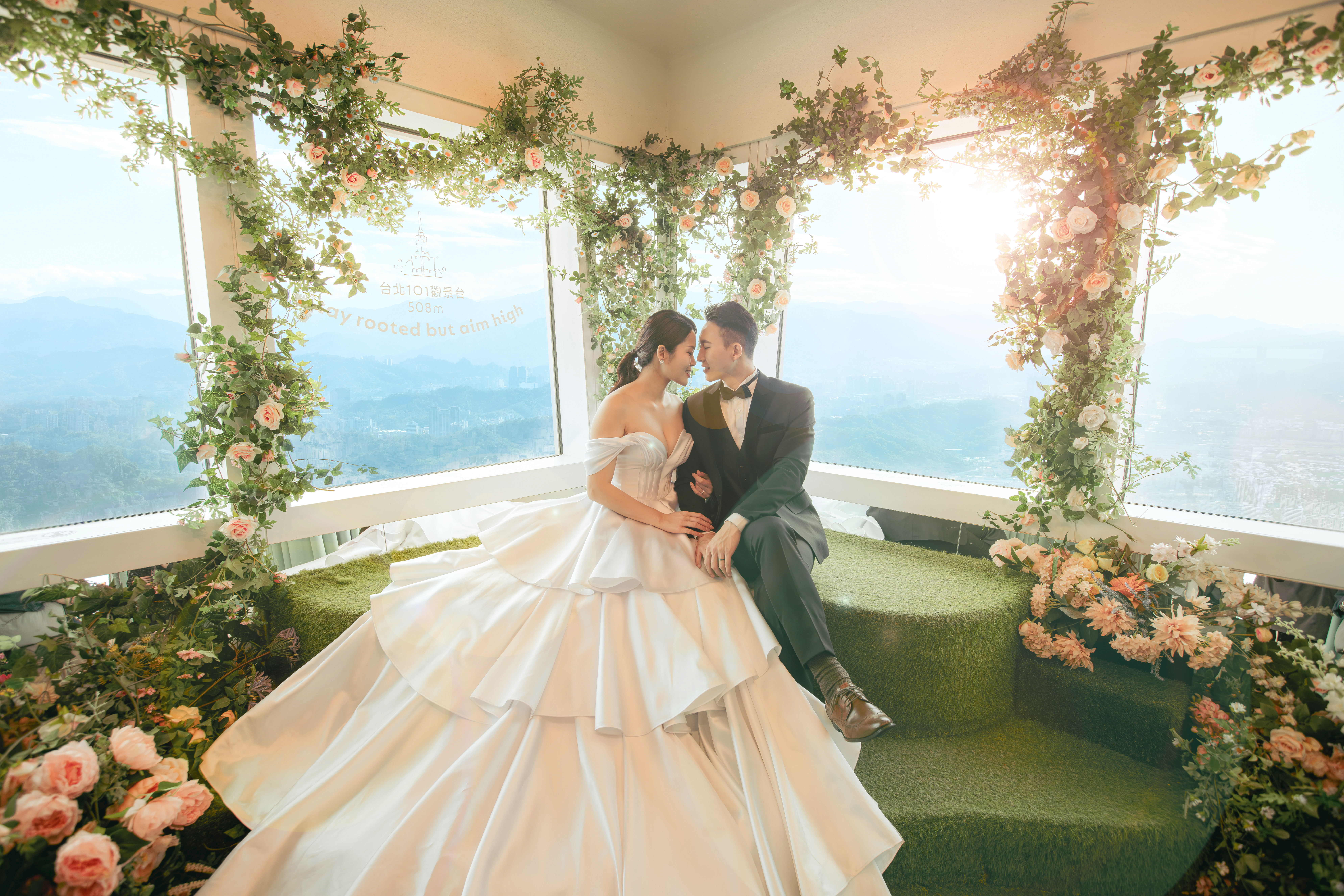 ◆幸福禮遇與獨家體驗:台北101董事長親自見證誓約、台北101餐廳電子抵用券8,000 元、專屬婚紗照乙張、精緻捧花乙束、台北101專屬證婚儀式配件、館內單筆消費滿30萬元,尊享觀景台高空婚婚紗體驗。