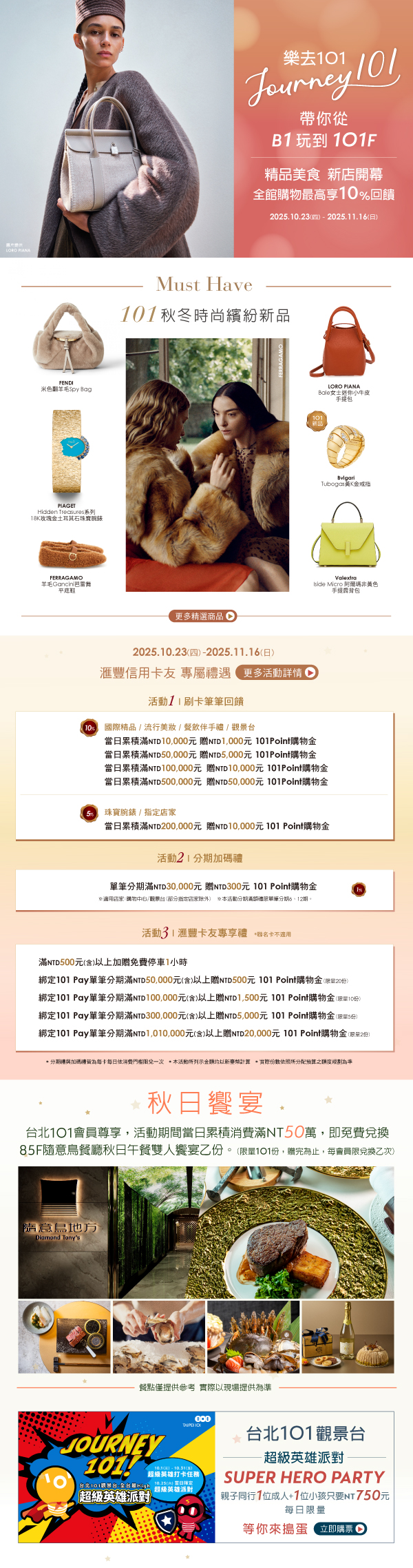 【滙豐卡友專屬】樂去101 秋日繽紛派對 帶你從B1玩到101F 當日累積消費1萬元送1,000元購物金