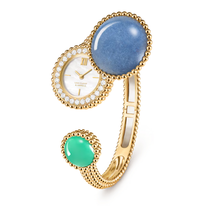 Hoffner說道,「Perlée 系列展現了律動、趣味與輕盈。自我們合作以來,我始終希望藉由如遊樂場般的場景,勾勒出金珠在懸浮軌跡中的靈動姿態。這也是為什麼許多元素看似漂浮、近乎不穩定,卻能藉由精巧的安排與富有節奏的布局展現獨特魅力,並以鮮明色彩營造出虛實交錯的互動感。」