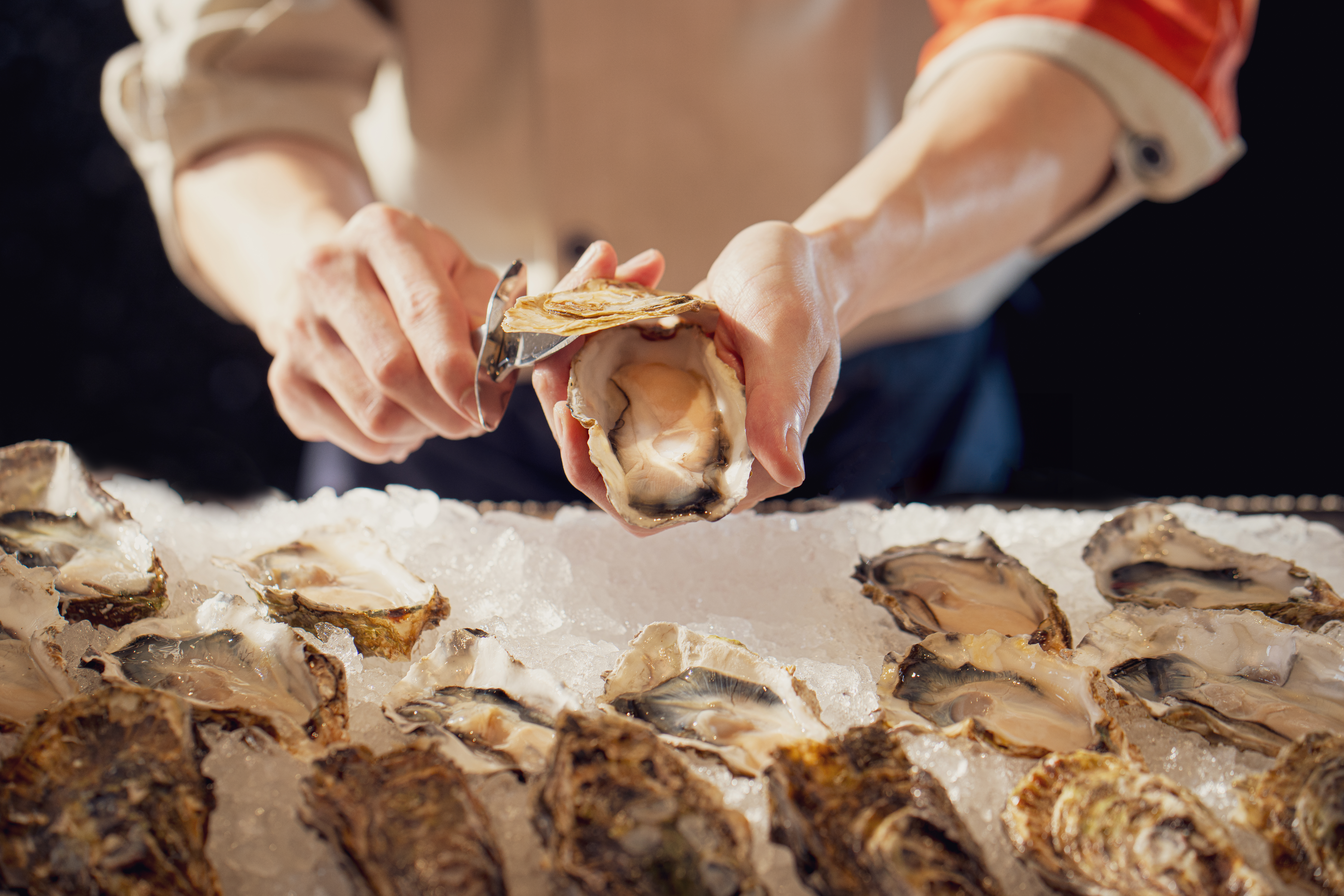 包含秋蟹、活蝦、鮮蚵、北海道大干貝、蛤蜊、活鮮鮑魚等,豐富的海鮮綜合拼盤,再搭配油花細緻均勻的頂級A5鹿兒島和牛,濃郁的牛肉甜味入口即化,為饕客帶來海鮮跟和牛一次雙重享受。